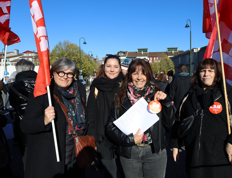 2025ko azaroaren 27an, langileak beltzez jantzirik mobilizatu dira Baionako kontseilu departamenduaren aitzinean.